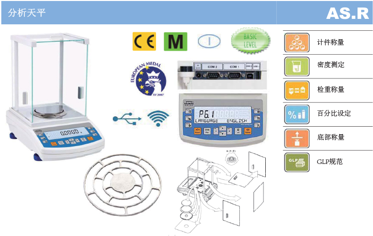 AS.R系列天平配備以下通訊接口:2×RS 232,A型USB,B型USB和可選配WiFi,